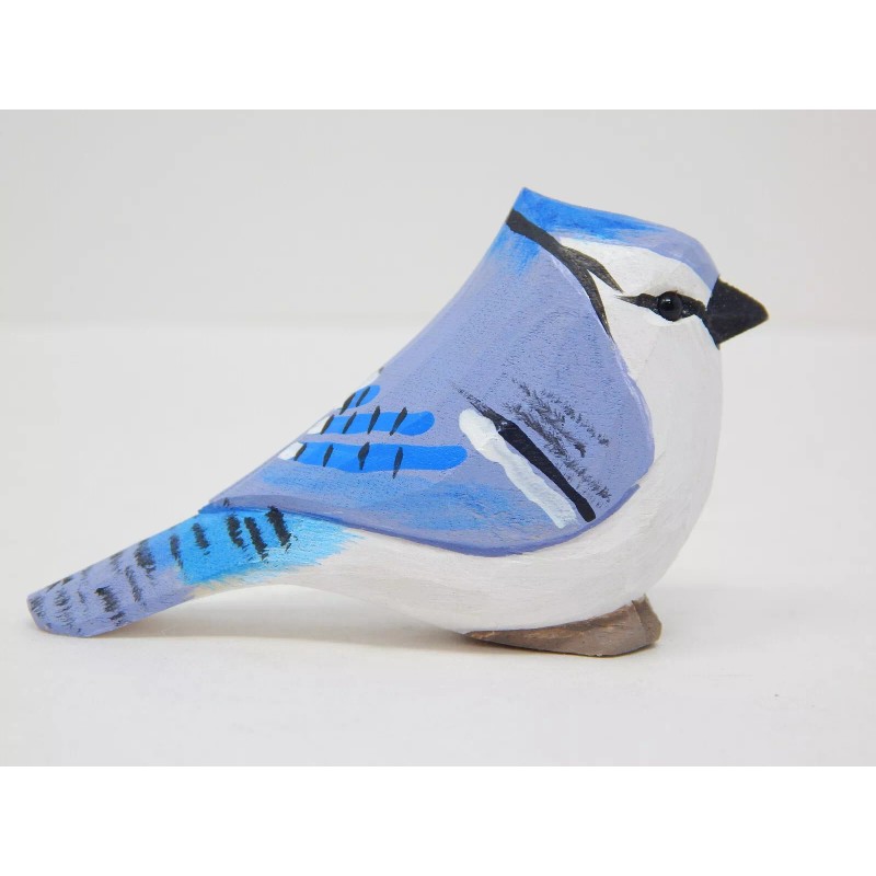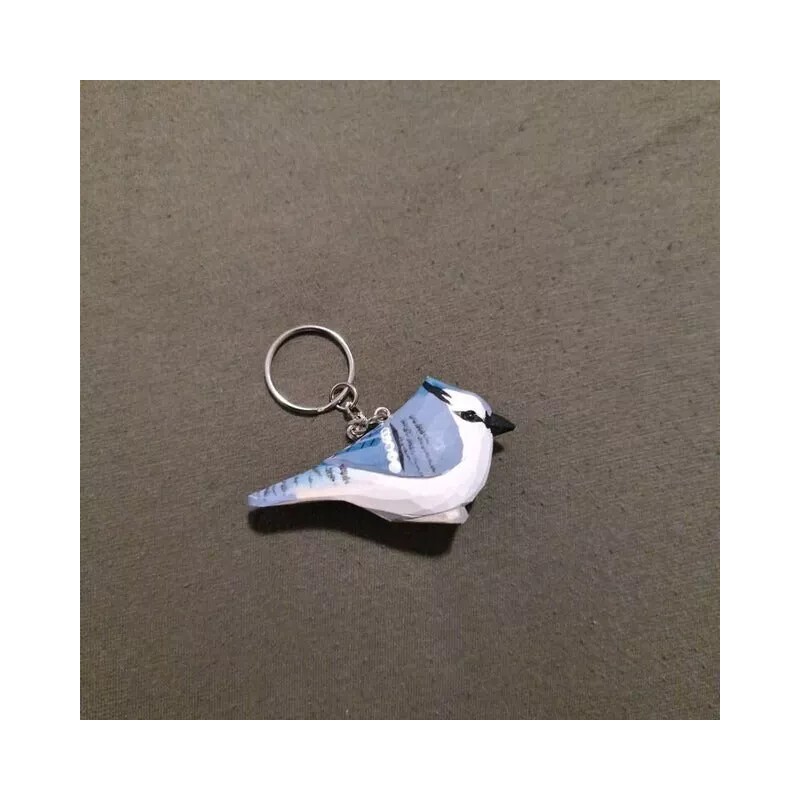 Blue Jay Keychain Ring Hook Clip Crested Jaybird Charm Miniature Wood Figurine