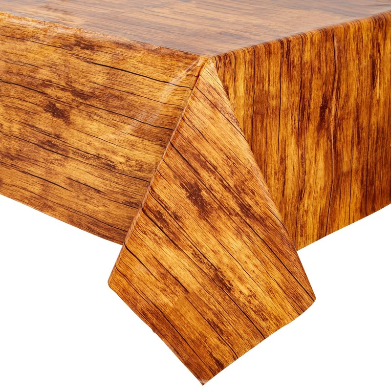 • Brown Plastic Tablecloth: Featuring a warm wood grain pattern, each wood tablecloth is perfect for farmhouse-themed events, western party decor, barn-themed parties, cowgirl or cowboy parties