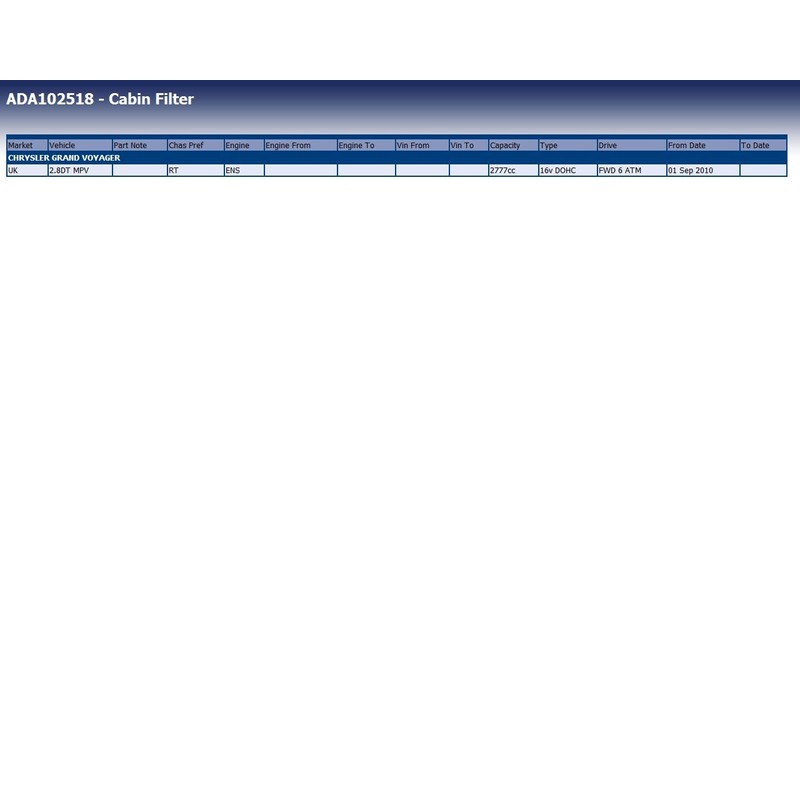 - Please refer to the vehicle manufacturer's information for recommended Cabin Filter change intervals