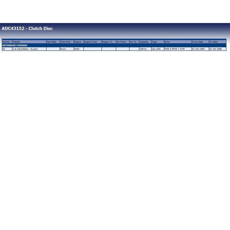 - among others suitable for: Mitsubishi: Carisma
