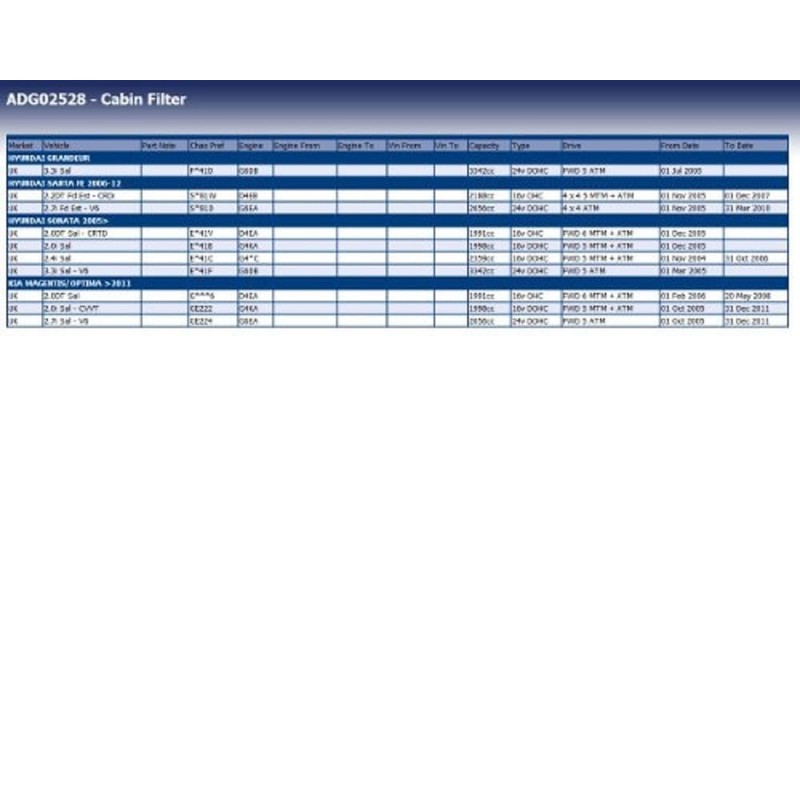 - Please refer to the vehicle manufacturer's information for recommended Cabin Filter change intervals
