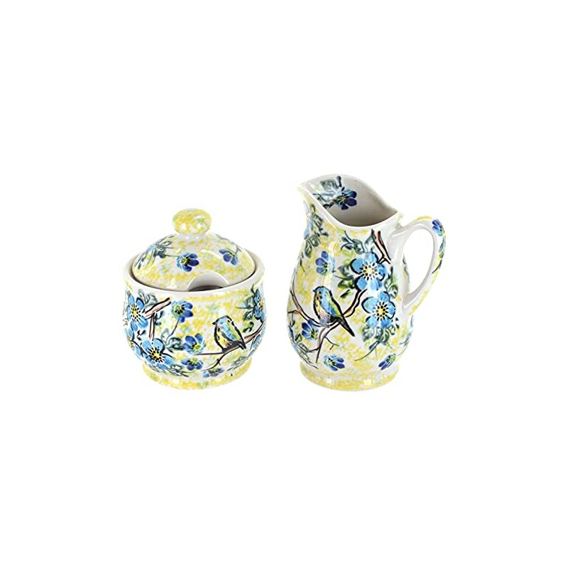 Blue Rose Polish Pottery Bluebird Garden Cream & Sugar Set