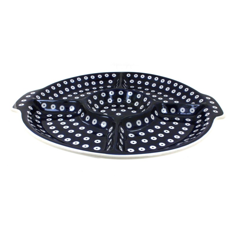 Blue Rose Polish Pottery Dots Chip & Dip Plate