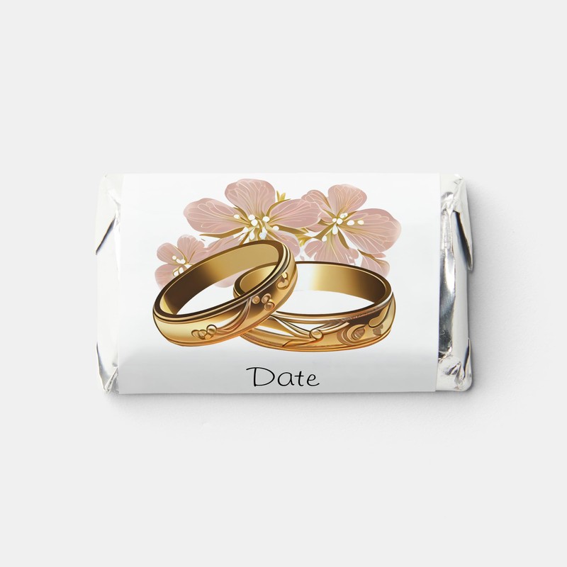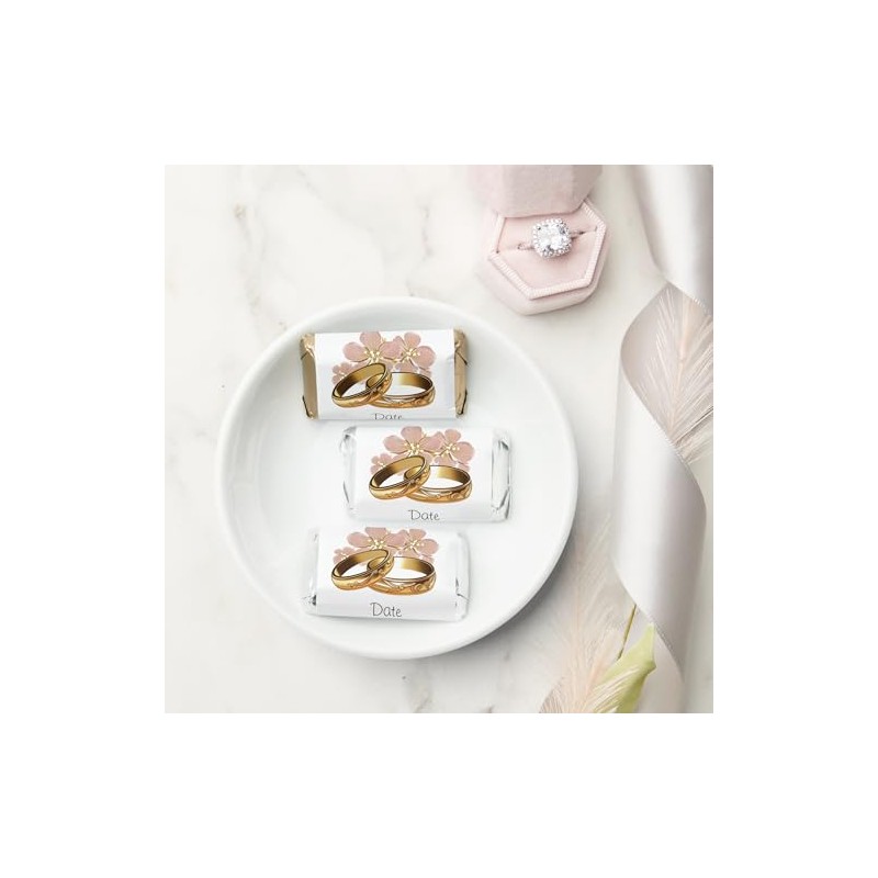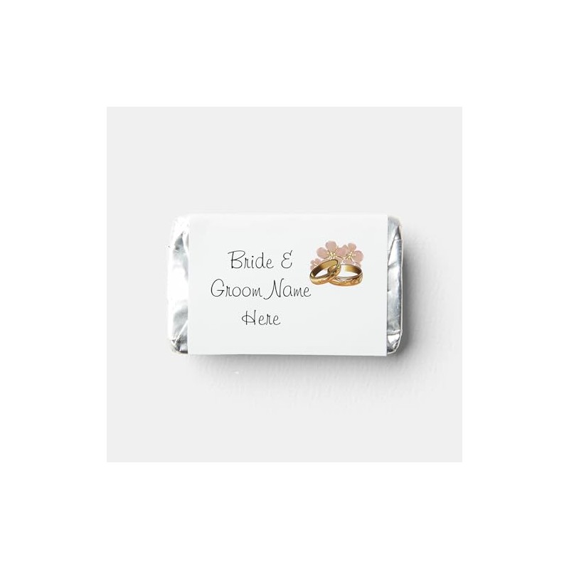 - 45 labels - Custom Miniature Chocolate Bar Label Wrappers , Gold Rings Wedding Party Favors - fits Miniature Candy Bars (NOT INCLUDED)