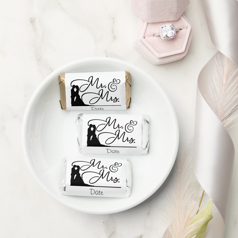 - 45 labels - Custom Miniature Chocolate Bar Label Wrappers , Mr. & Mrs. Wedding Party Favors - fits Miniature Candy Bars (NOT INCLUDED)