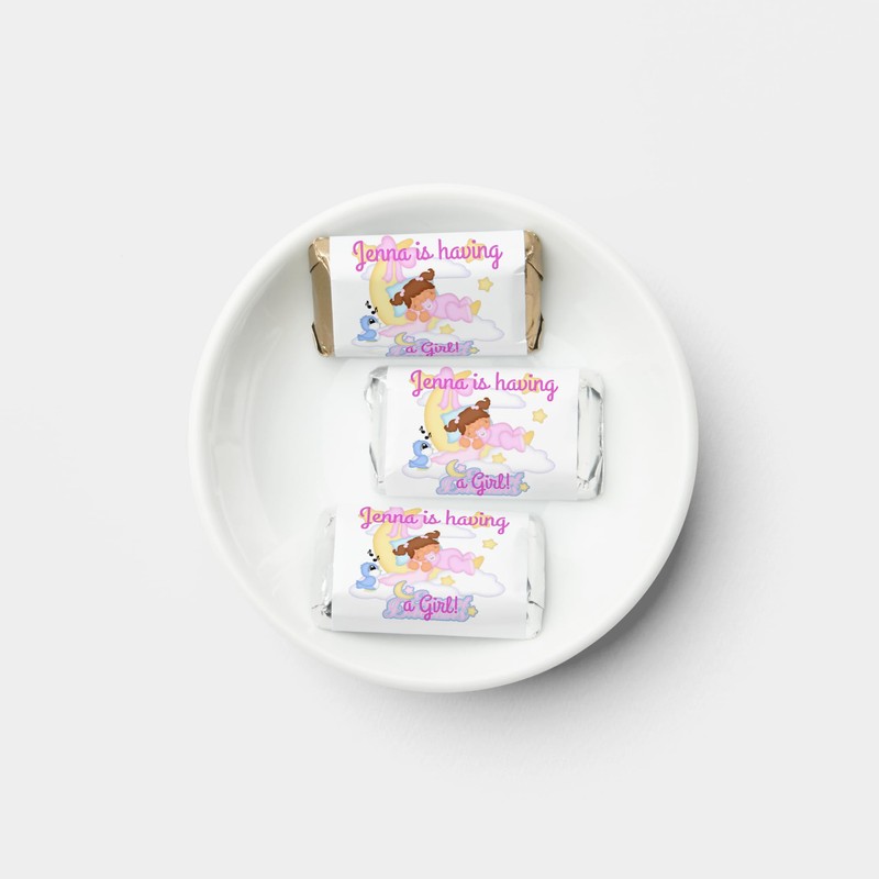 - 45 labels - Custom Miniature Chocolate Bar Label Wrappers , Pink Baby Shower Party Favors - fits Miniature Candy Bars (NOT INCLUDED)