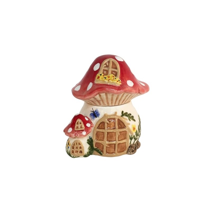 - MADE OF HAND-CRAFTED CERAMIC: Our Happily Nesting Mushroom Salt and Peper Set with Homey Accents depicts a flourishing vibrant mushroom that can be stacked to form a small house. Adorable polka-dots provide delicate details atop our enchanting mushroom house as a small details adorn the outside. Blue Sky Claywork's salt and pepper set is wonderfully hand-crafted and hand-painted, ensuring a unique design!