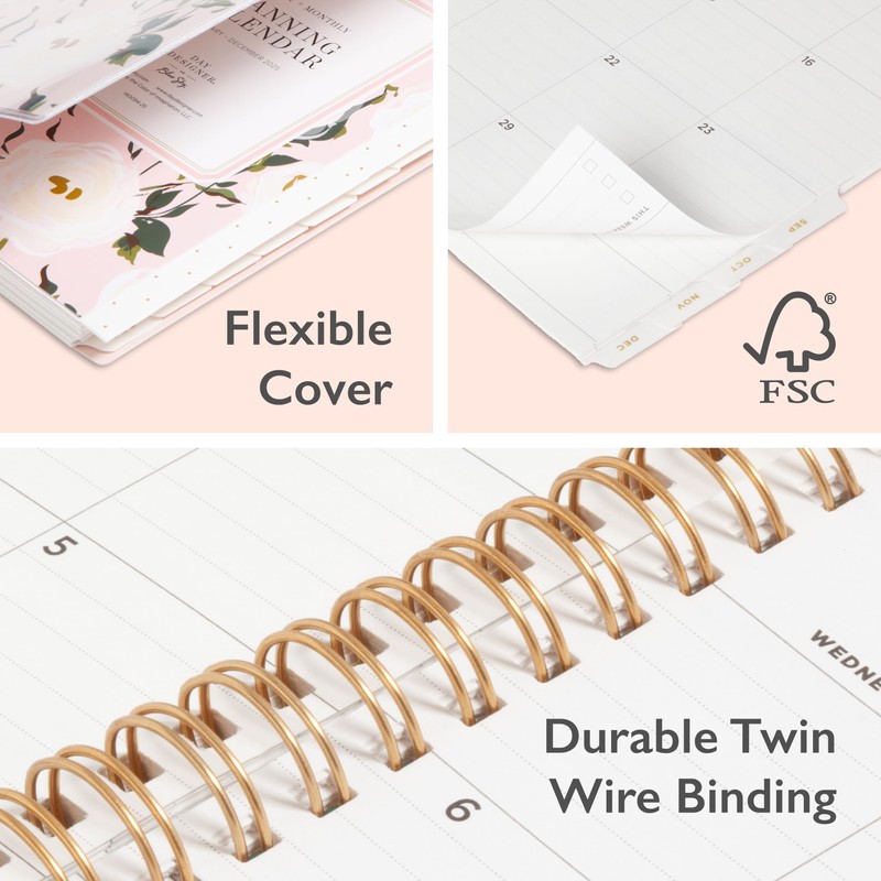 - Printed on white paper for clean writing space, with premium quality covers in a floral pattern and durable, coated tabs that withstand constant use throughout the year