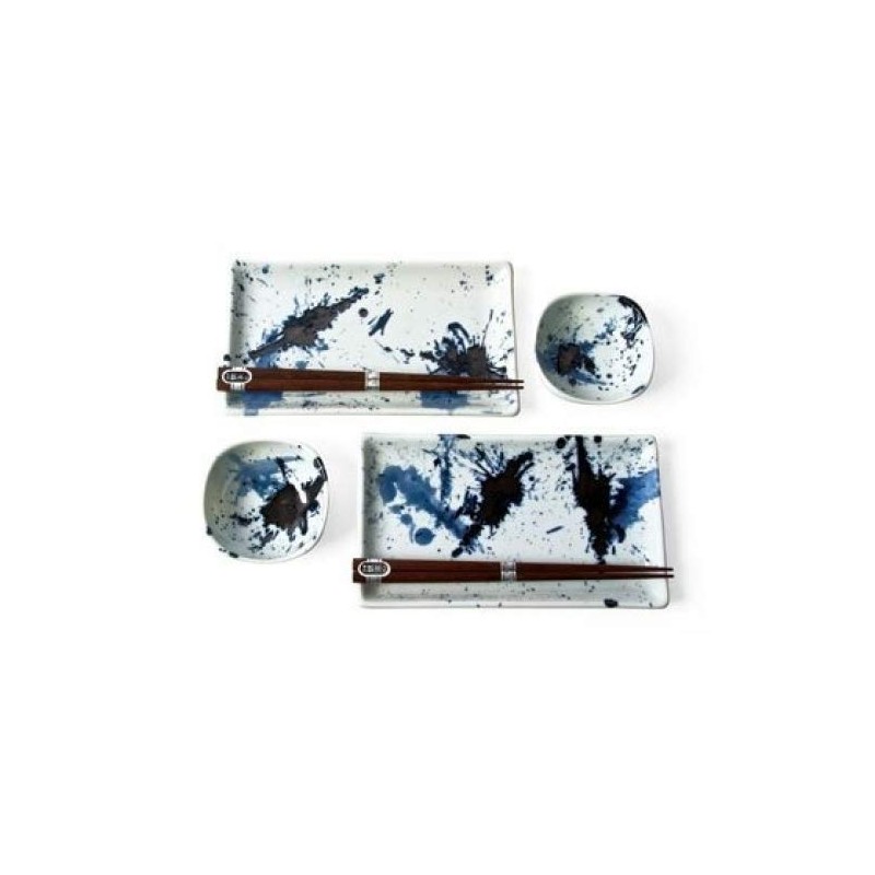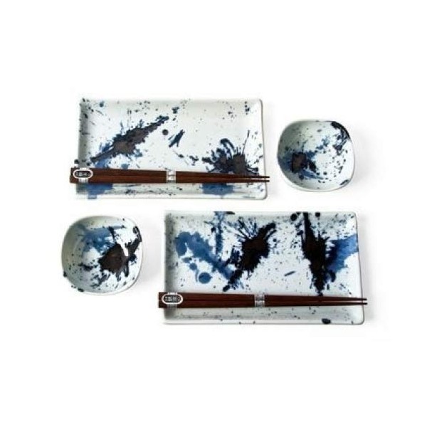 - Boxed set of two each, sushi plates, wooden chopsticks, and sauce bowls