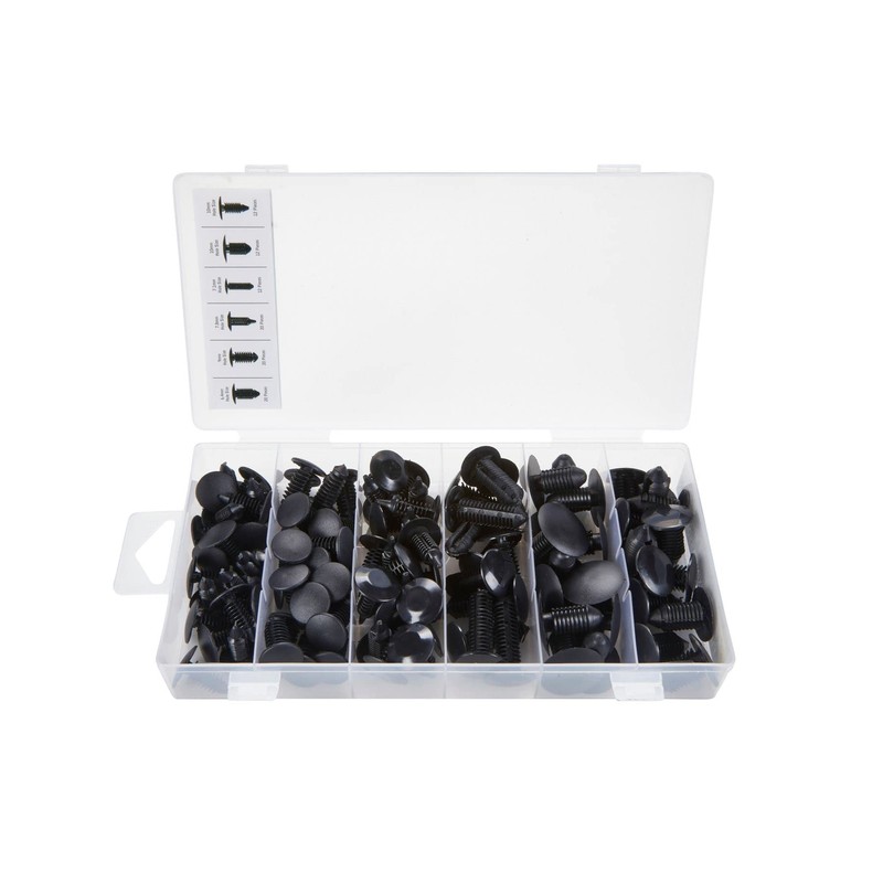 The BlueSpot 96 PCE Assorted Fir Tree Fixing Set is specifically designed for use on vehicles for securing trim, bumpers and door plastics. Includes handy carrying case for quick and convenient storage. Contains 96 assorted fir tree fixings.