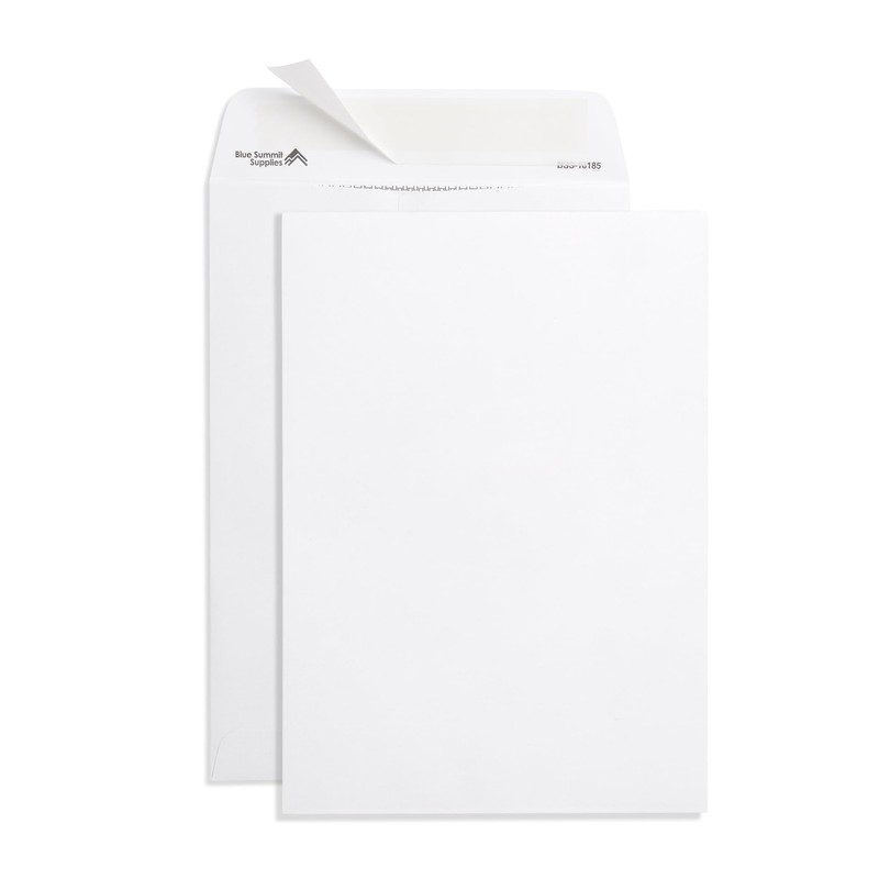 Blue Summit 100 White Catalog Envelopes - 28lb - 7 x 10 inch - Security Tinted, Strong Self Seal