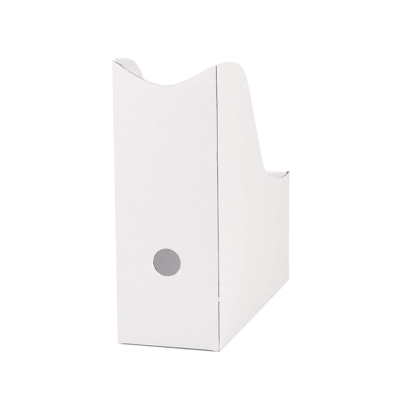 - These classic white, cardboard magazine file boxes feature a smooth, matte finish that can be left as-is or customized as a DIY project to match any décor and never clash with your color palette.