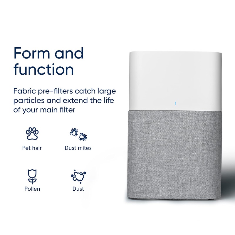 Blueair Blue Pure 211+ Auto Winter Reed Pre-Filter, Washable Pre-Filter Fabric Traps Pollen, Pet Hair & Dust, Light Gray