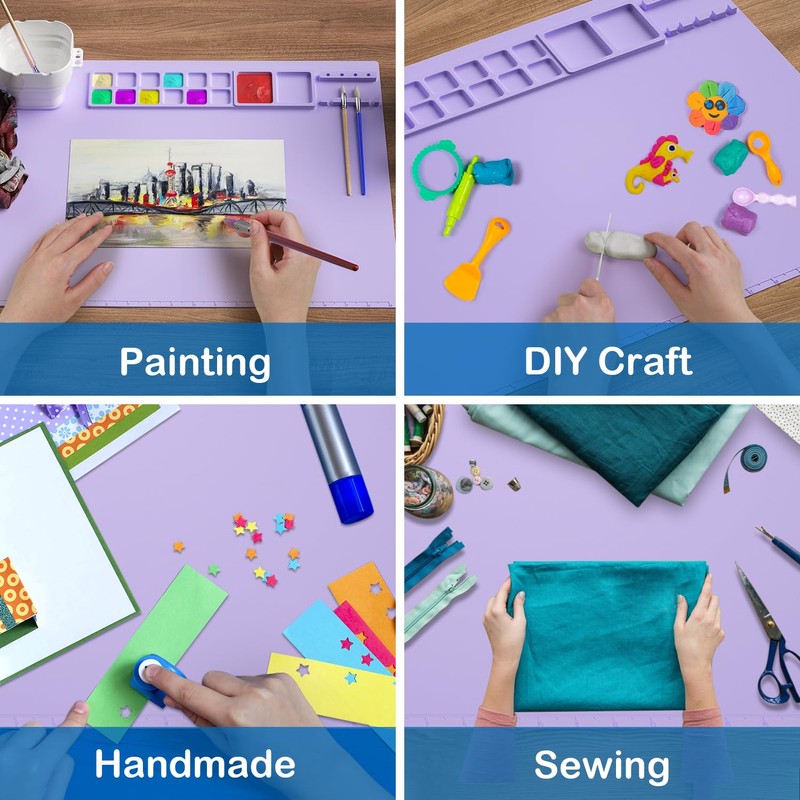 - Keep Your Table Clean: 20"16"inch silicone painting mats; The big size to prevent resin splatters or paint stains. Protect your desk countertop against water, scratches, burn, grease and keep your crafting table away from resin, epoxy, glue, glitter, paint, ink, oil, scratches etc.