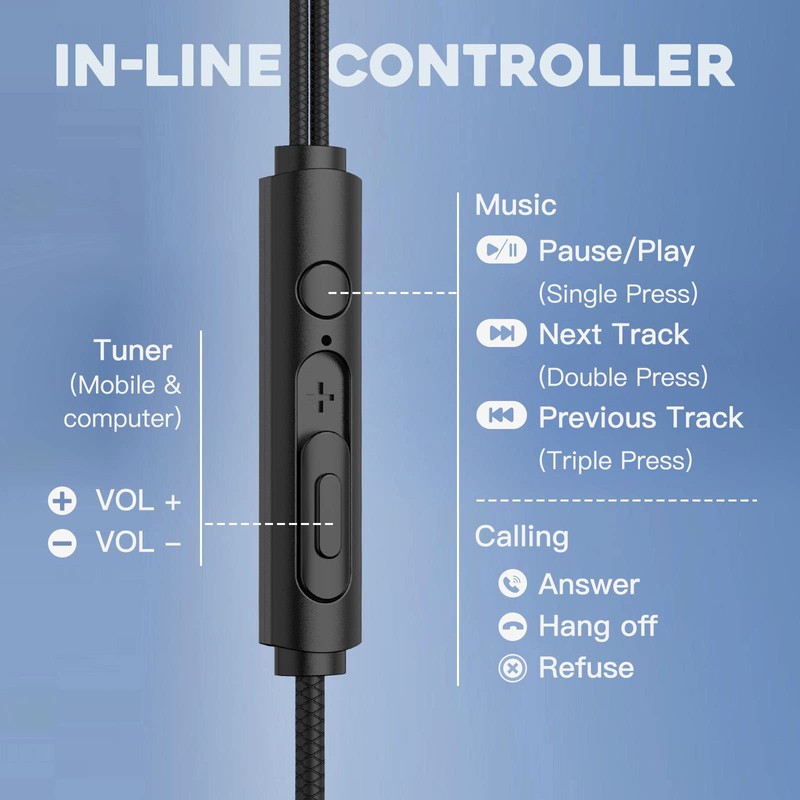 - 【Multiple Platform Compatible】BlueFire 3.5mm gaming earbuds with computer adapter cable, suitable for PC, Laptop, Tablet, Mobile Phone, etc. There is an in-line controller that allows you to adjust volume, switch songs or answer calls or at any time.