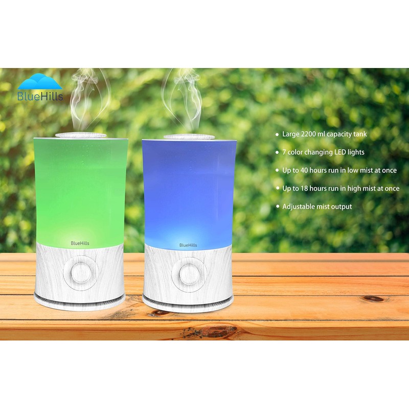 BlueHills Premium 2000 ML XL Large Essential Oil Diffuser Aromatherapy Humidifier for Large Room Home 40 Hour Run Huge Coverage Area Lights 2 Liter Extra Large Capacity Diffuser White Wood Grain E004 by BlueHills Store