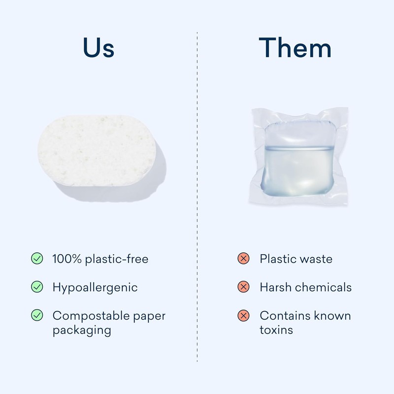 BLUELAND Plastic-Free Dishwasher Detergent Tablets offer powerful, eco-friendly cleaning without the plastic waste. Made from plant and mineral-based ingredients, these unscented tablets are effective at tackling tough, baked-on stains on dishware, glassware, silver, and porcelain. Proven by independent labs to clean effectively without the need for rinse aids, these tablets are free from dyes, fragrances, preservatives, and phosphates. Convenient and easy to use, just drop a tablet into the main dispenser and run your dishwasher. Certified B Corp, vegan, cruelty-free, and climate neutral, BLUELAND’s formula is the perfect balance of powerful and planet-friendly.
