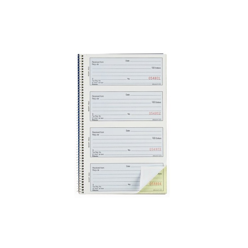 Blueline Receipt Book, 200 Numbered Duplicates, Carbonless, Bilingual 10-5/8" x 6-5/8" (A4074BT)