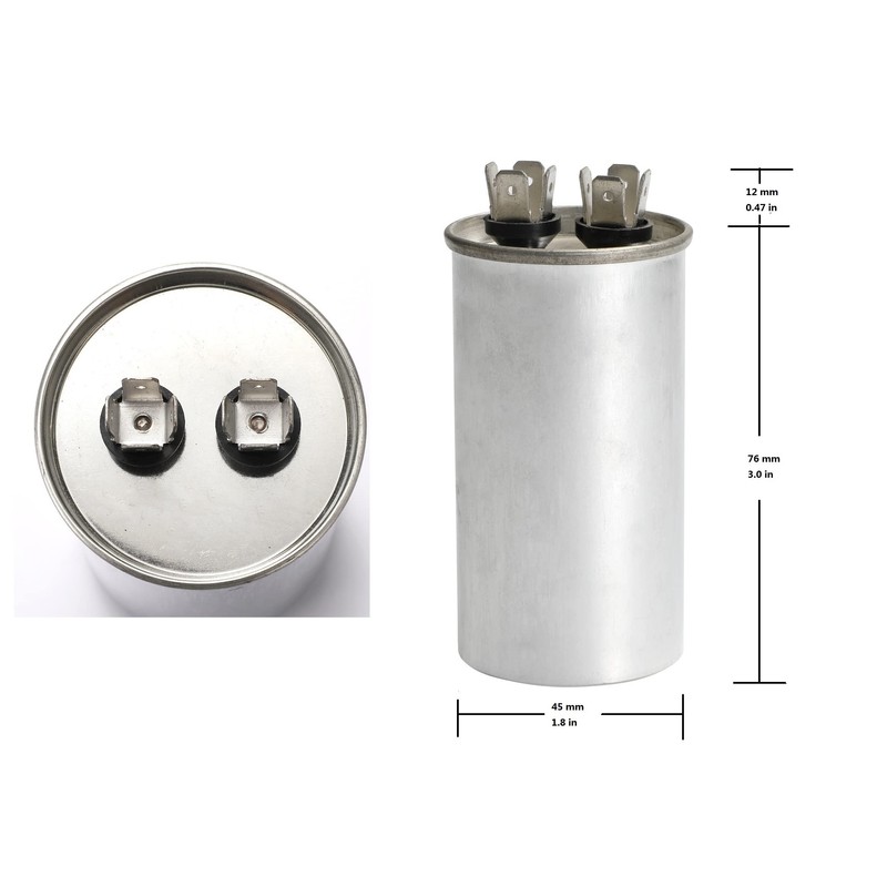 - Production Name: Motor Run Capacitor, Volume: 20 MFD, Withstand Voltage: 450V AC,Tolerance:+/-5%, Shap: Round, Module: CBB65 Capacitor,Single, Terminal Size: Standard 1/4 in Terminal(6.35x0.8mm/ 0.25x0.03in)