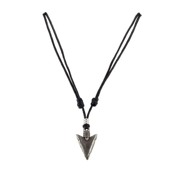 BlueRica Arrowhead on Adjustable Black Cord Necklace (Old Silver Finish)