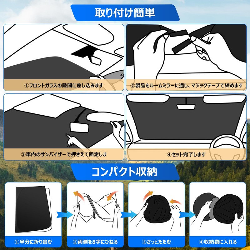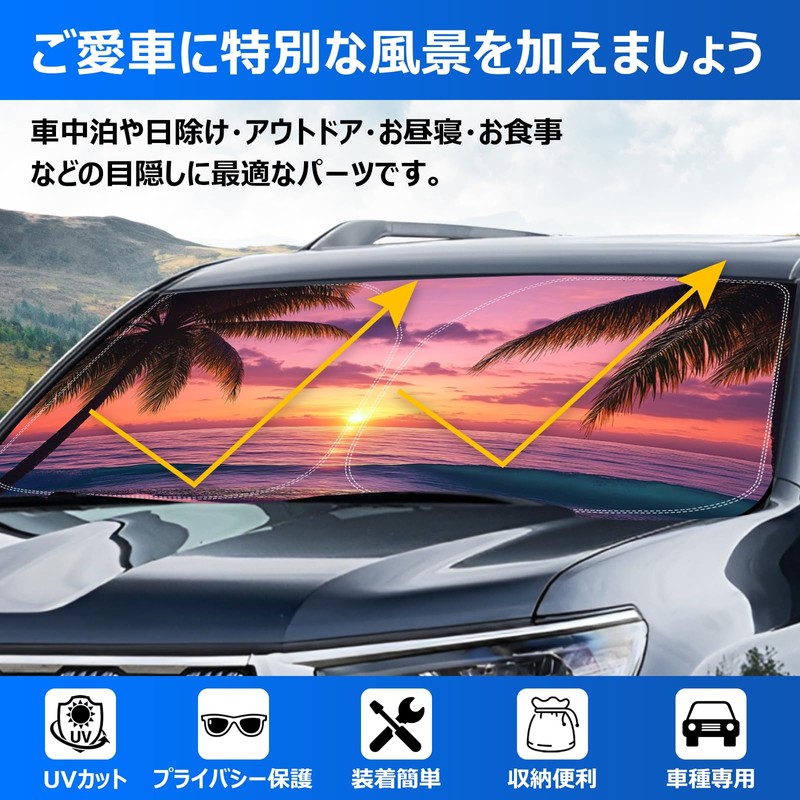 • Upgraded multi-layered composite material & special fabric next-generation fabric: Uses high quality materials to significantly upgrade the light blocking performance than the thin silver model on the market. Also, you don't have to worry about the thick model on the market that is too thick and it is difficult to store. Easy to use and smooth storage to protect your car from sunburn. The vibrant seaside sunset surface gives you a resort feel every time you install it, adding a unique landscape to your life