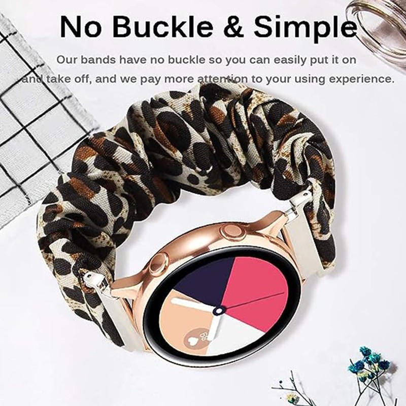Blueshaweu 20mm Fabric Elastic Scrunchie Elastic Women Replacement Straps Compatible with Garmin vívoactive 5/Approach S12/S40/S42/D2 Air X10/Forerunner 245/55/645/Venu 2 Plus (Black+Leopard)