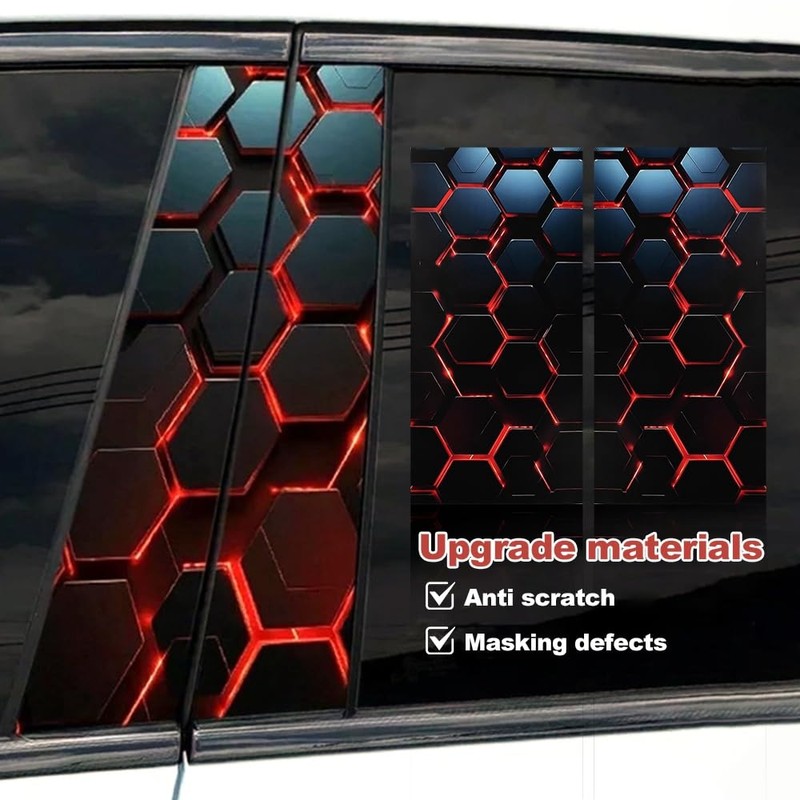 - Universal design: these honeycomb stickers car have a universal size and fit the B-pillars of most vehicle models. The stickers are easy to cut and adjust so they can adapt to the curves and shapes of different vehicles, whether they are saloons, SUVs or trucks.