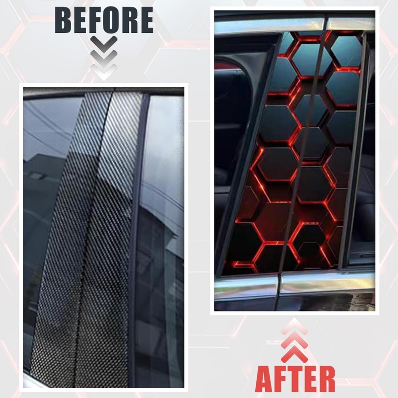 - Easy installation: these decorative car honeycomb stickers are easy to cut and apply. Clean the B-pillar, spray plenty of water, position the sticker, remove the air bubbles with a squeegee and cut off excess material, the installation is complete.