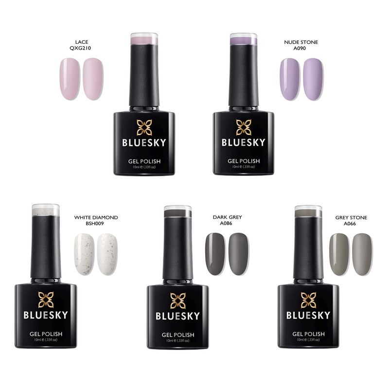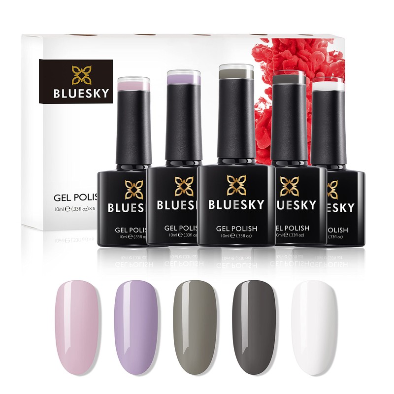 BLUESKY Gelnagellack Set | 5/6 UV Lacke zum Preis von 4/5 | Gel-Nagellack für glänzende und schöne Nägel | langer Halt von bis zu 3 Wochen (BLUESKY Rosy to Grey 5er Set)