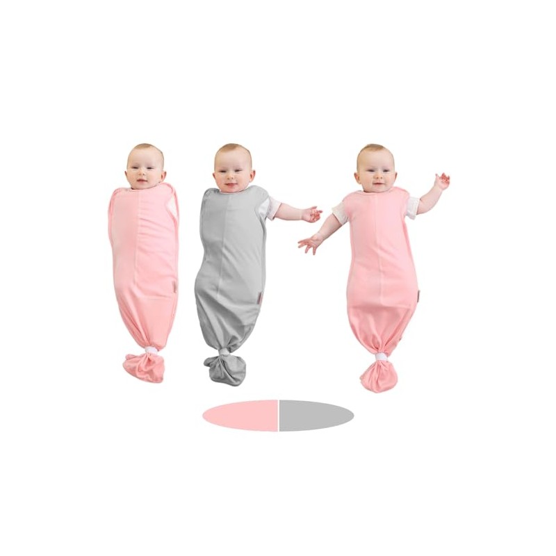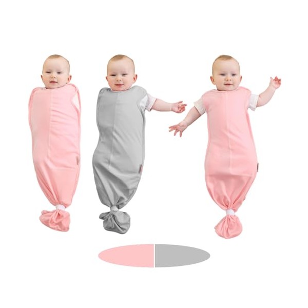 BlueSnail Newborn Swaddle Blanket, Adjustable Transition Swaddle,2 Packs (Gray+Pink)