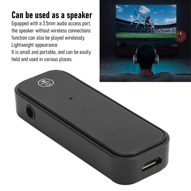 1、AUX Bluetooth receiver transmitter, lossless sound quality, brings you an excellent listening experience. 2、To be a Bluetooth TV, it has a 3.5mm audio interface to connect to the TV and transmit sound to the headset via Bluetooth. 3、To be a Bluetooth speaker, it can be connected to a 3.5mm audio port, and the speaker without Bluetooth function can also be played wirelessly. 4、Lightweight appearance, small and portable, can be easily held and used in various places. 5、Simple operation, just follow the step‑by‑step instructions on the manual, you can use it easily.