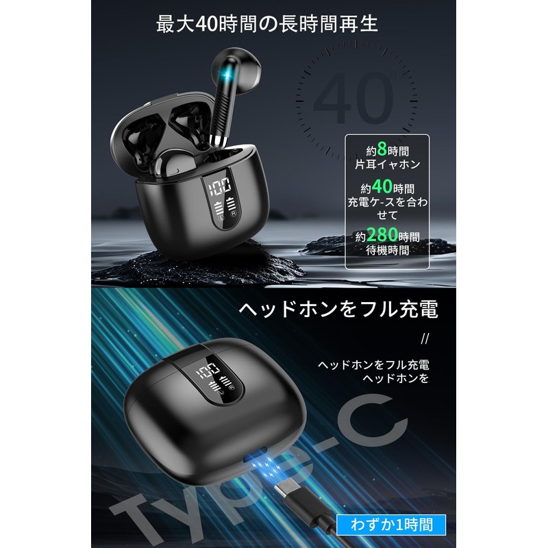 - Type C Fast Charge and 40 Hours Playback: The Bluetooth earbuds have a high capacity battery and energy saving design, so you can enjoy more than 8 hours of music or phone calls on a single charge. With the charging case, you can use it for a total of 40 hours, so you don't have to worry about running out of battery. In addition, it supports rapid charging via the Type-C port, so it can be charged in a short time. If the earbuds run out of battery, you can charge for 10 minutes and play for 60 minutes