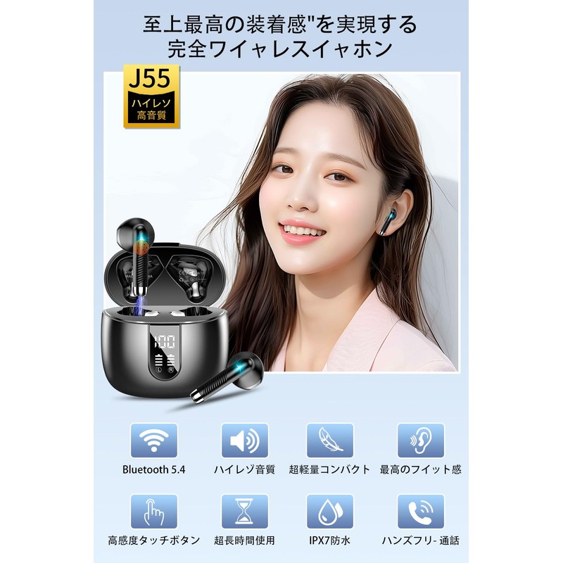 - Bluetooth 5.3 Technology, Easy Pairing: J55 wireless Bluetooth earphones adopt the latest Bluetooth 5.3 technology, the data transmission speed is twice as fast as the previous generation and the connection is more quickly and stable. You only need to pair it for the first time, but once you set it up, you just need to take the earphones out of the charging case, and it will automatically reconnect to the last connected device, and you can immediately immerse yourself in the music world