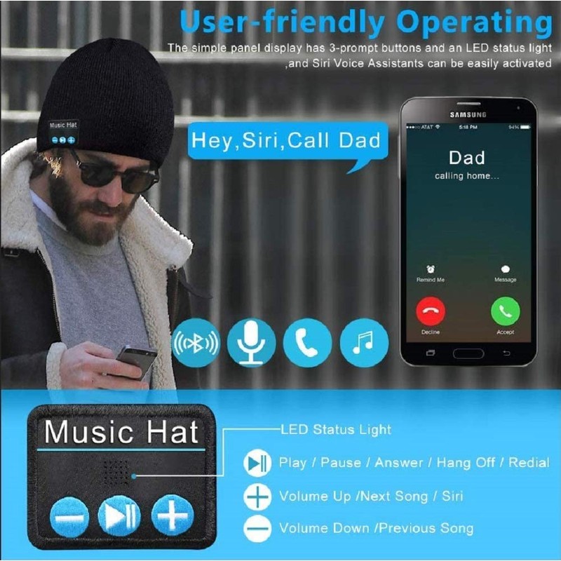 - ♫ Best Unique Gift Choice—Bluetooth beanie will let user look and feel like a cool & fashionable men/women! Our beanie with Bluetooth function will command attention when you walk into the room and give you the confidence to conquer the world that makes it easy to give as a unique gifts for women, men, teen made boy, girl as birthday gift, Christmas gift, Thanksgiving days gift or any other special occasion.