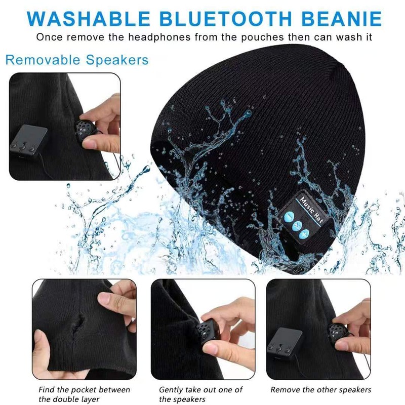 - ♫ Fashion & Unisex & Washable—Wireless Beanie features Hand-stitched and great breathability. Fashion style and unisex design conforms to all men, women and children. Bluetooth beanie design with a hole in it that make the headphones easy-to-remove and reinstall so that you can wash your beanie. Hand-washable after removing the Bluetooth modules.
