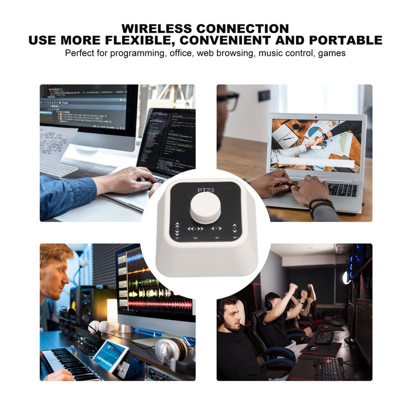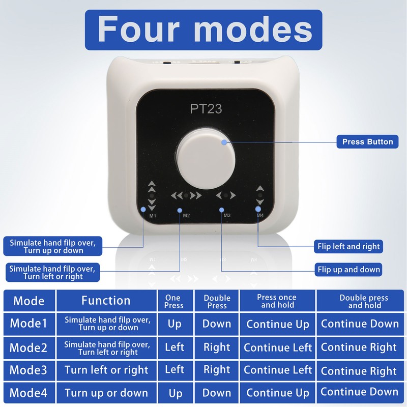 1、MULTIFUNCTIONAL USE: The wireless Bluetooth page turner can not only be used to simulate manual page turning, but also be used as a custom programmed button and multimedia controller key switch. 2、PORTABLE AND FLEXIBLE: Adopting wireless Bluetooth connection, the foot pedal can be connected wirelessly with devices such as computers and cell phones. So that the user can be more flexible in use. 3、IMPROVED DESIGN: Wireless foot pedal supports customized programming buttons, users can set different functions or shortcut keys for the buttons according to their own needs to improve work efficiency. 4、HIGH APPLICABILITY: Users can use the Bluetooth page turner for various scenarios and applications according to their needs and habits. Whether it is programming, office, web browsing, music control, or gaming. 5、STRONG COMPATIBILITY: Wireless foot pedal is suitable for a wide range of devices such as computers and cell phones, whether it is for Windows, for Mac OS or for Android, for iOS and other operating systems, can be paired with it.