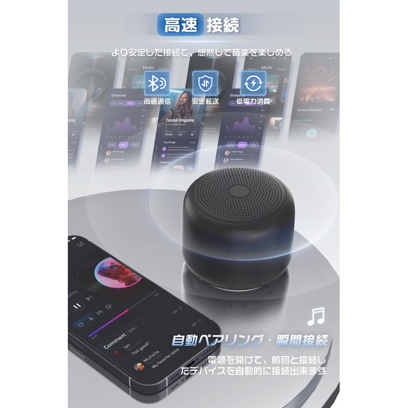 • 360° omnidirectional sound; Delivers better sound quality; This Bluetooth speaker can diffuse sound in all directions from 360°. Enjoy balanced sound without cracking sound at home or outdoors. The mini speaker produces rich, rich sound, moving high-performance drivers and subwoofers, filling your room with music. It is as small as a mug, but it produces an exciting sound