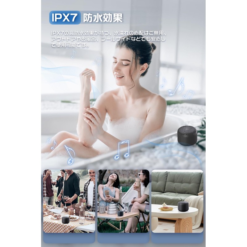 • (IPX7 Waterproof and Excellent Compatibility) IPX7 level waterproof speaker, so you can use it in the bathroom or kitchen as well as outdoors. All sealed construction and waterproof cap, perfect for outdoor and bath speakers. Excellent interchangeability is compatible with various devices with Bluetooth, such as iOS, Android, Windows, smartphones, tablets, PCs, switches, and more. Once paired with your device, it will be automatically Bluetooth pairing from the second time