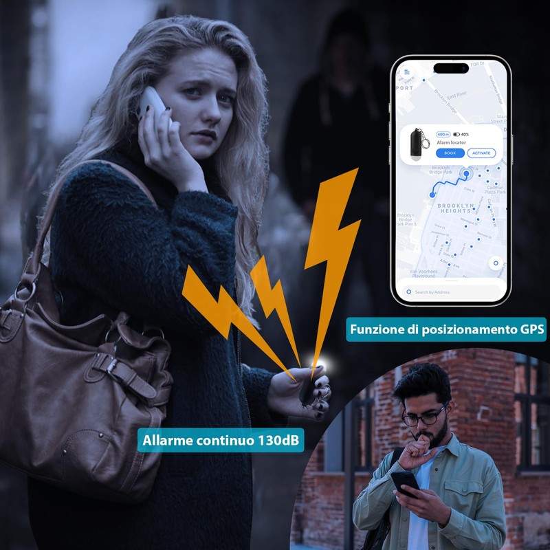 - Notfall-Sicherheitsalarm: Ein schnelles Doppeltippen der Taste oder das Herausziehen des Kontaktstiftes lassen den Alarm mit einer Lautstärke von bis zu 130 Dezibel ertönen, was der Lautstärke des Feuerwerks entspricht und aus 100 Metern Entfernung hörbar ist. Auf diese Weise werden diejenigen, die sich in der Nähe befinden, über die Situation gewarnt