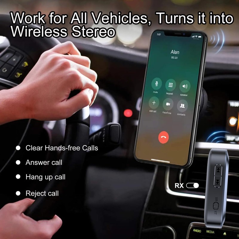 - Make car audio instantly wireless: Insert the car AUX interface and connect to the wireless phone, enjoy music, navigation broadcast and hands-free call are three no-mistakes.