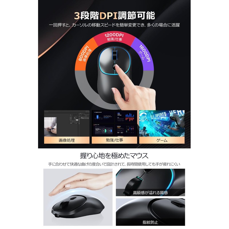 - (3 Stage DPI & Lightweight & Thin) The mouse is equipped with 3 DPI switching functions of 800, 1200, and 1600. It can easily adjust the cursor speed to suit the user's preferences, providing a comfortable experience from precision work to high speed operation, making it suitable for daily life and work. The mouse wireless design is very light. The ultra-thin type makes it easy and convenient to store, so it is also recommended for people who carry the mouse for a long time