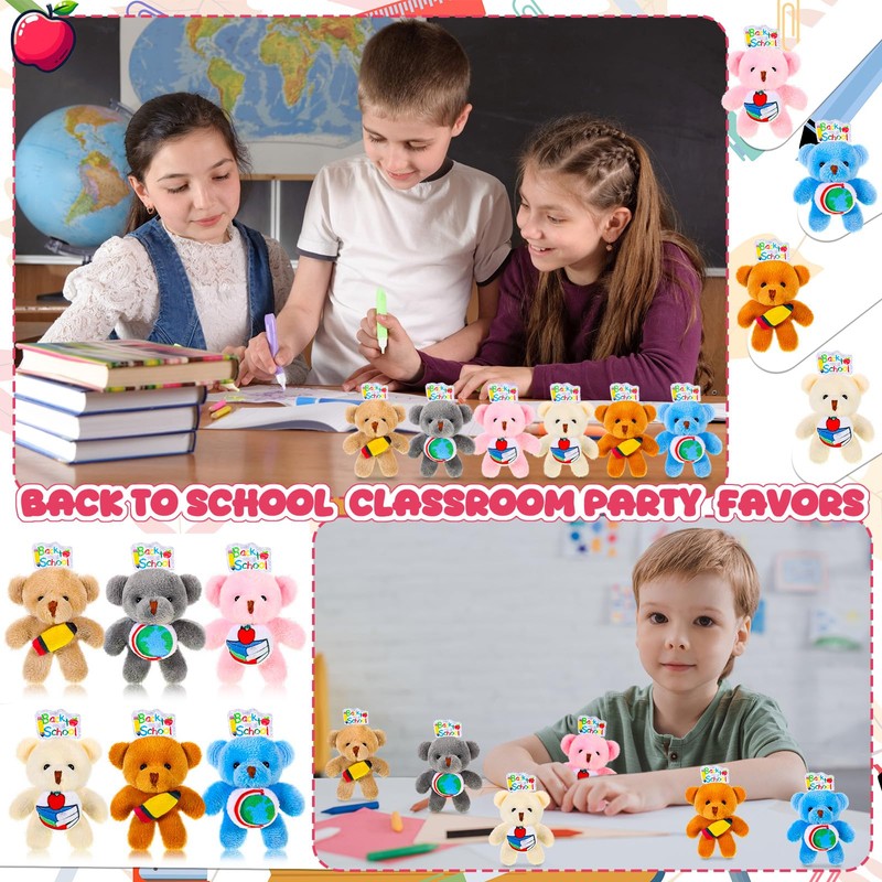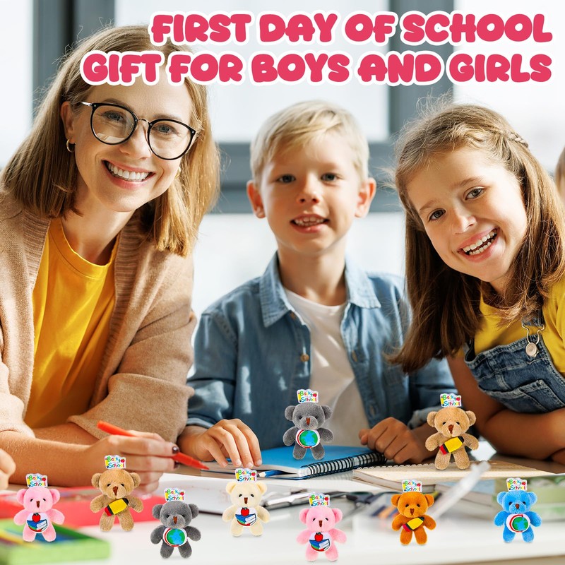 - Back to School Elements: Our mini first day of school plush animals are themed on the first day of school, with books, globes, pencils and the words "Back to School"; It‘s lively and cute, eye-catching, creating a strong back to school atmosphere