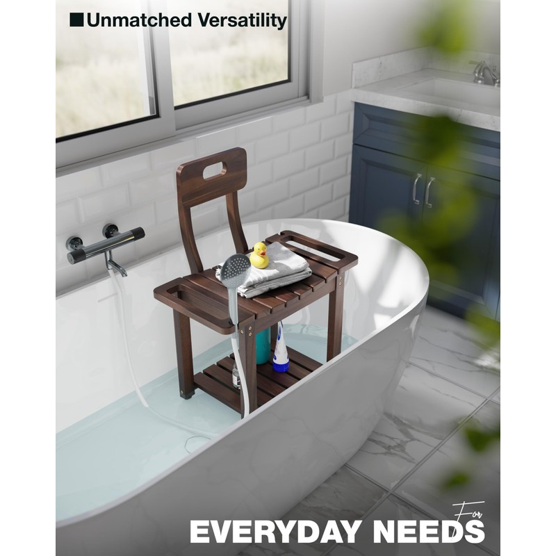 - 📏 Space-Saving Design: Measuring 23.4''L x 12.5''D x 17.7''H (overall height 30.6'' with backrest), this shower stool fits seamlessly in showers, tubs, or next to your bathtub. It’s also ideal for small bathrooms or tight spaces.