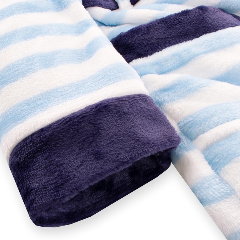 - TWO POCKETS FOR TREASURES AND TREATS: Equipped with two spacious pockets, this white and blue bathrobe is not just meant for warmth - it's a secret hiding place for snacks, bluey gifts or other treasures your little explorer might find on his way to bed.