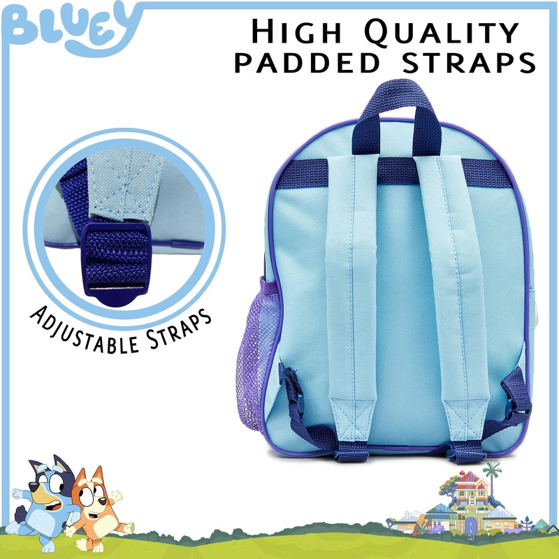 - Mesh Side Pocket for Water Bottle: This exclusive Bluey & Bingo backpack features a convenient mesh side pocket that securely holds a water bottle, ensuring easy access to refreshments during adventures