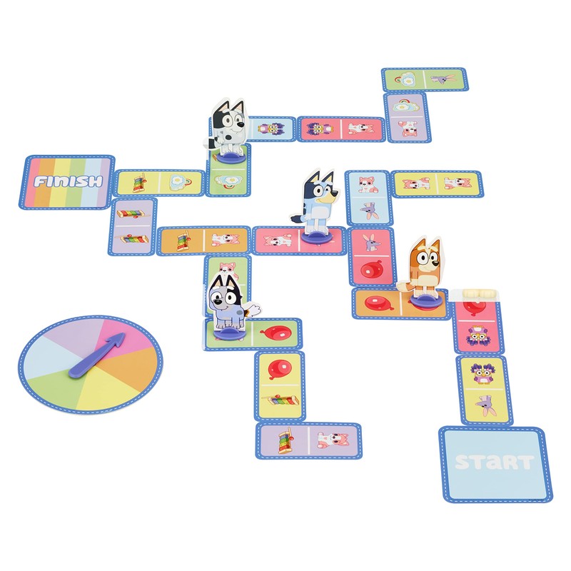 - Includes 44 colorful picture cards, a color spinner and 4 character pawns depicting Bluey's family members.