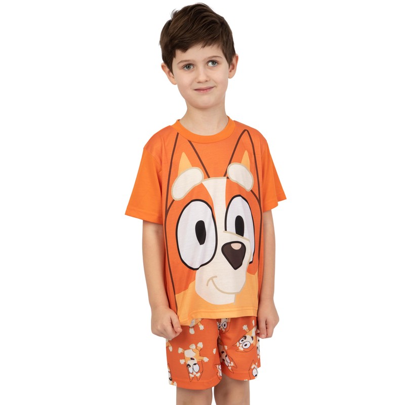 • TWO PACK PAJAMAS FOR EXTRA FUN This set of two Bluey pyjamas features two playful designs - an orange kids pyjama boy with bingo and one bluey pajamas in blue, both with matching dance patterns on the shorts. Perfect for little fans of Bluey and Bingo