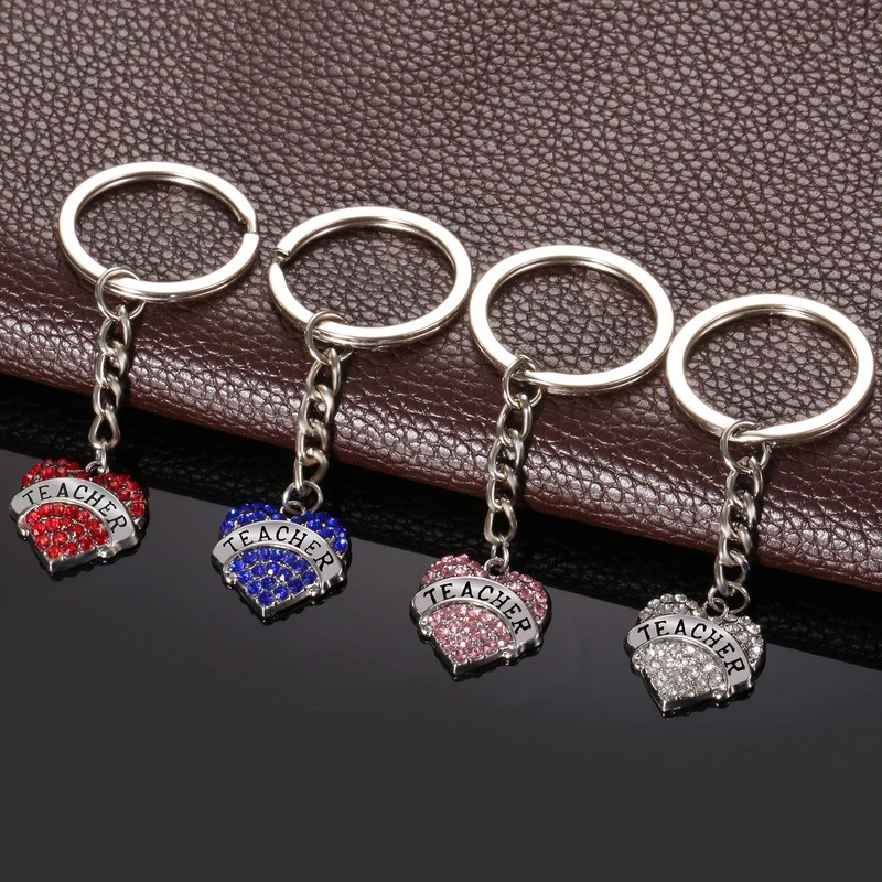 - Stylish design: these keychains are designed to be heart-shaped, inlaid with a lot of rhinestones in different colors, shiny and adorable, with "TEACHER" printed, you can send to your affectionate women teachers as gifts
