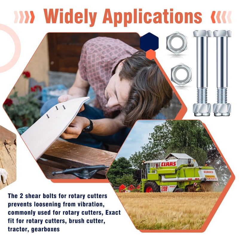- Widely Applications: the 2 shear bolts for rotary cutters prevents loosening from vibration, commonly used for rotary cutters, Exact fit for rotary cutters, brush cutter, tractor, gearboxes, Ideal for securing parts and heavy loads in industrial machines