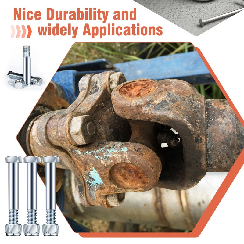The rotary cutters bolts and lock nuts kit made of Zinc, It is strong and reliable, resistant to corrode, making them suitable for both indoor and outdoor applications.